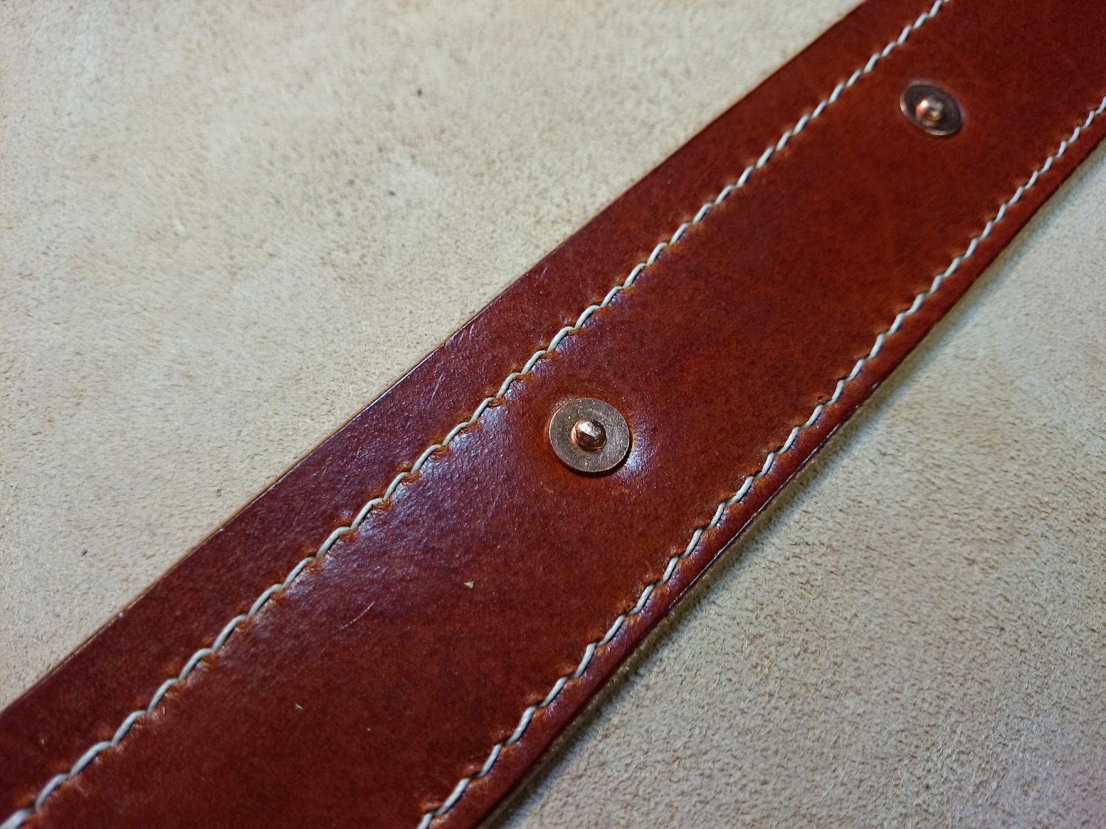 Now the only thing left to do is rivet the side straps to the the front and making holes in the strap.